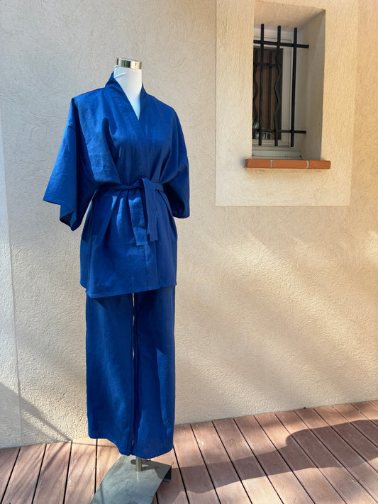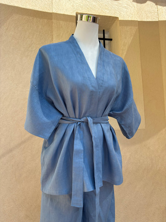 ENSEMBLE KIMONO BLEU JEAN 100% LIN