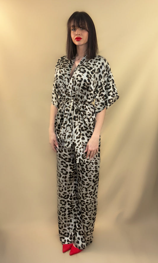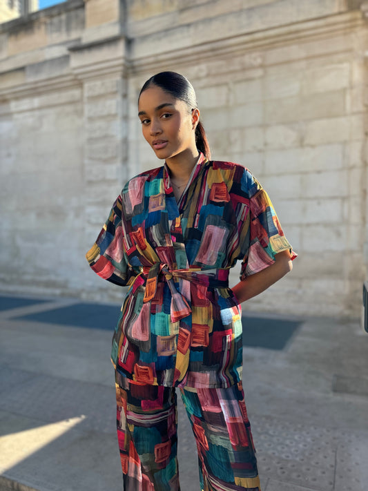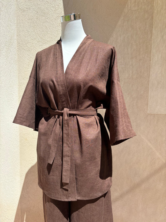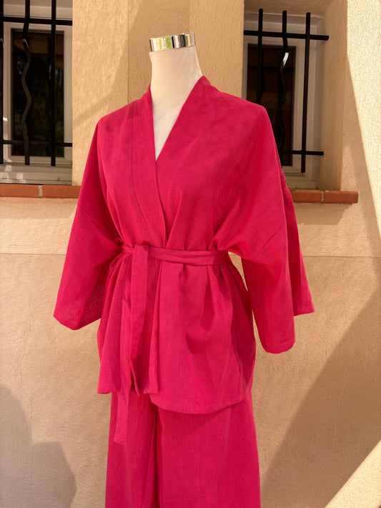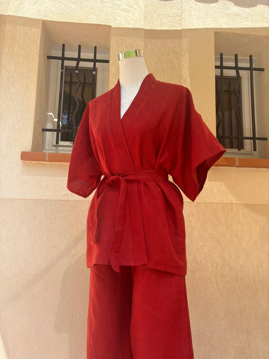 ENSEMBLE KIMONO ROUGE 100% LIN