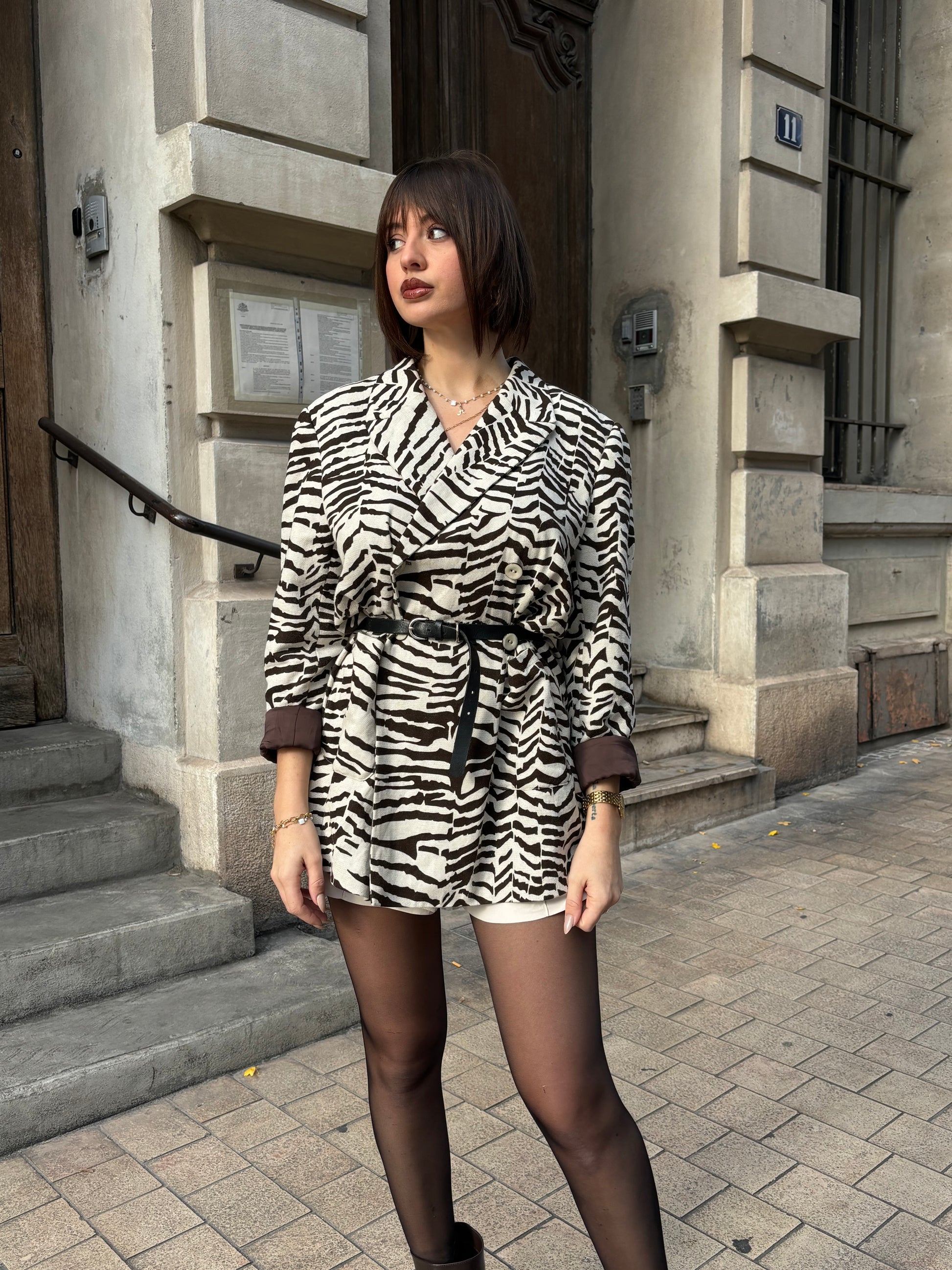 DOUBLE-BREASTED BLAZER - LINEN AND COTTON