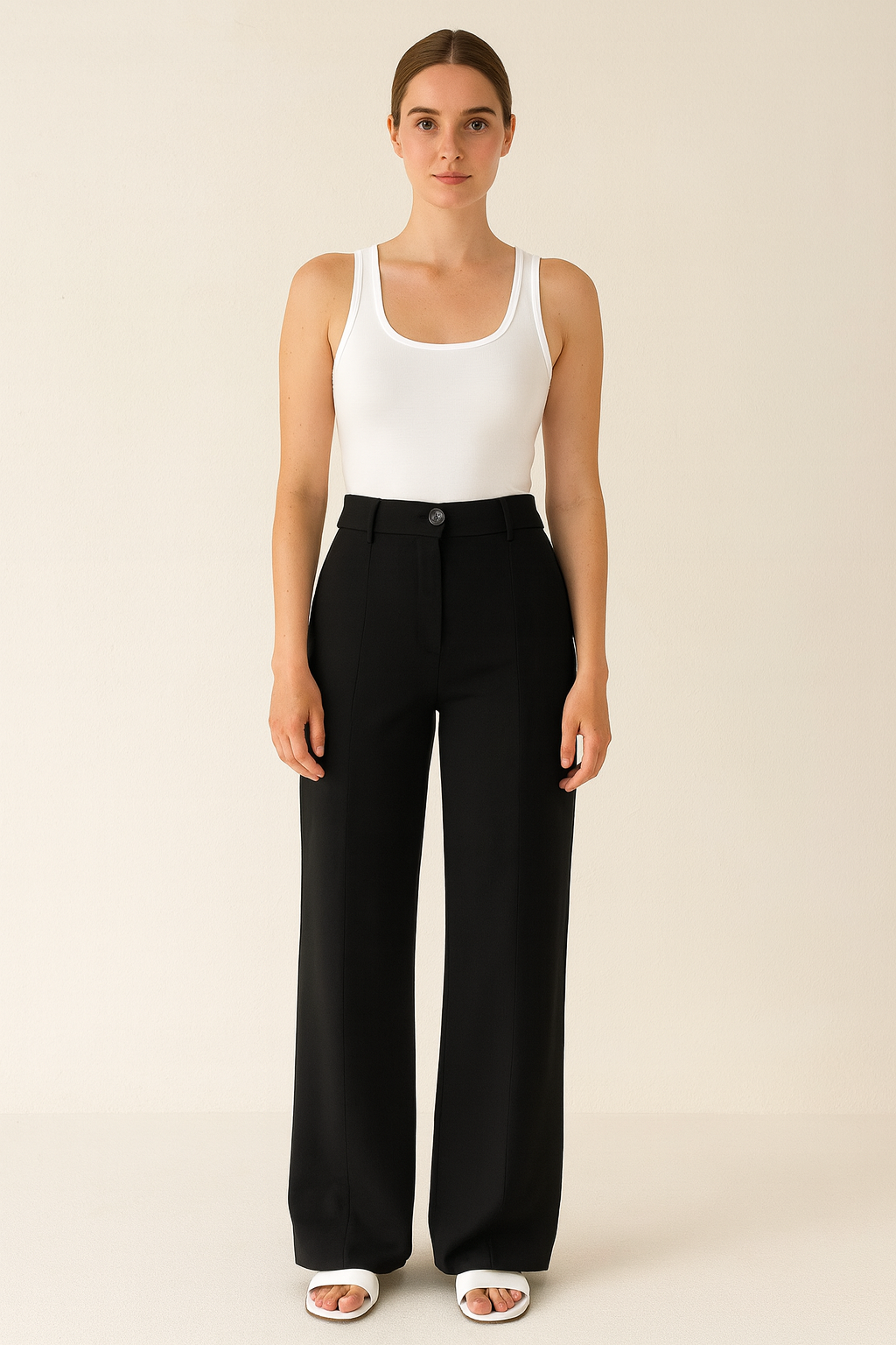 L'indispensable à avoir dans sa garde robe. Ce pantalon élégant 100% laine se porte pour toutes occasions.